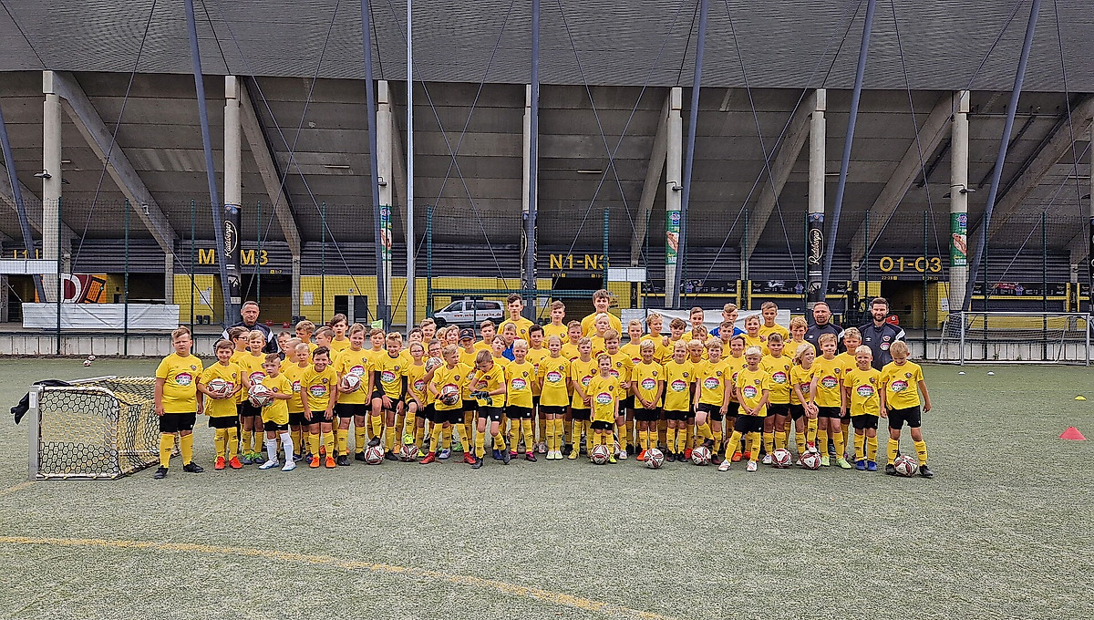 Für die Profis rollt der Ball erst am Samstag, doch von Montag, dem 31. Juli, bis Freitag, dem 4. August, sind rund 60 Kinder auf dem Kunstrasenplatz hinter dem Rudolf-Harbig-Stadion in Bewegung. 9 Uhr beginnt täglich das Training, mit wechselnden Schwerpunkten: mal Koordination, mal Torschüsse, mal Defensivverhalten. Zwischendurch gibt es ein gemeinsames Mittagessen, bevor am Nachmittag die nächste Einheit ansteht und die Eltern 16 Uhr ihren erschöpften und glücklichen Nachwuchs wieder mit nach Hause nehmen können. Essen und Getränke sowie Ausrüstung sind für alle Teilnehmerinnen und Teilnehmer im Angebot enthalten.