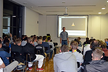 Am Montag fand in der Aula des Dresdner Sportgymnasiums die Regelschulung für Dynamos Nachwuchskicker zur neuen Saison statt. Dazu sprach Stefan Herde, Schiedsrichter der NOFV-Oberliga und der A-Junioren Bundesliga, in einem einstündigen Vortrag zu den Spielern aus dem schwarz-gelben Großfeldbereich.