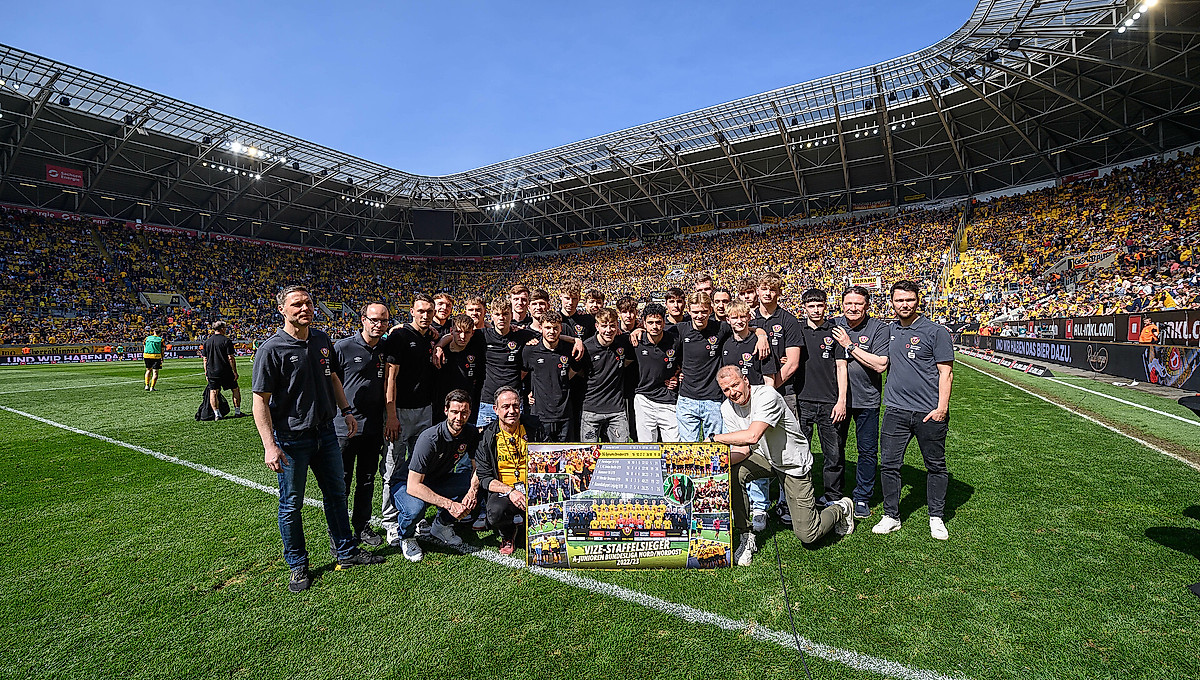 In insgesamt 17 Spielen der Saison konnte das Team von Cheftrainer Willi Weiße 13 Siege einfahren und landete am Ende mit 38 Punkten auf dem zweiten Tabellenplatz knapp hinter Hertha BSC Berlin. Auch im Landespokal der A-Junioren kämpfte sich die U19 bis ins Finale, in dem sie am 2. Juni 2023 auf RasenBallsport Leipzig trifft und damit die Chance auf die Titelverteidigung hat. Für diese starke Leistung konnte sich der schwarz-gelbe Nachwuchs am Samstag nochmal den verdienten Applaus von den Rängen des Rudolf-Harbig-Stadions abholen.
