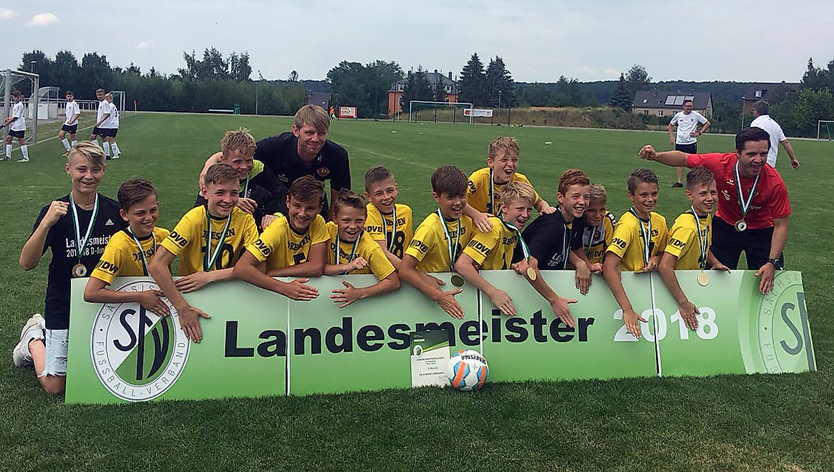 Sie haben in der Saison zurückliegenden 2017/18 alles abgeräumt: Landesmeisterschaft, Sachsenpokal sowie die Hallenmeisterschaften von Sächsischem Fußballverband und NOFV.{media-right-nachwuchs-adv}Für diese überragende Leistung wurde unsere U13-Mannschaft des letzten Jahres von der Sportjugend Dresden neben 15 anderen Teams für die Wahl zur „Jugendmannschaft 2019“ nominiert.