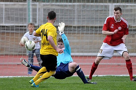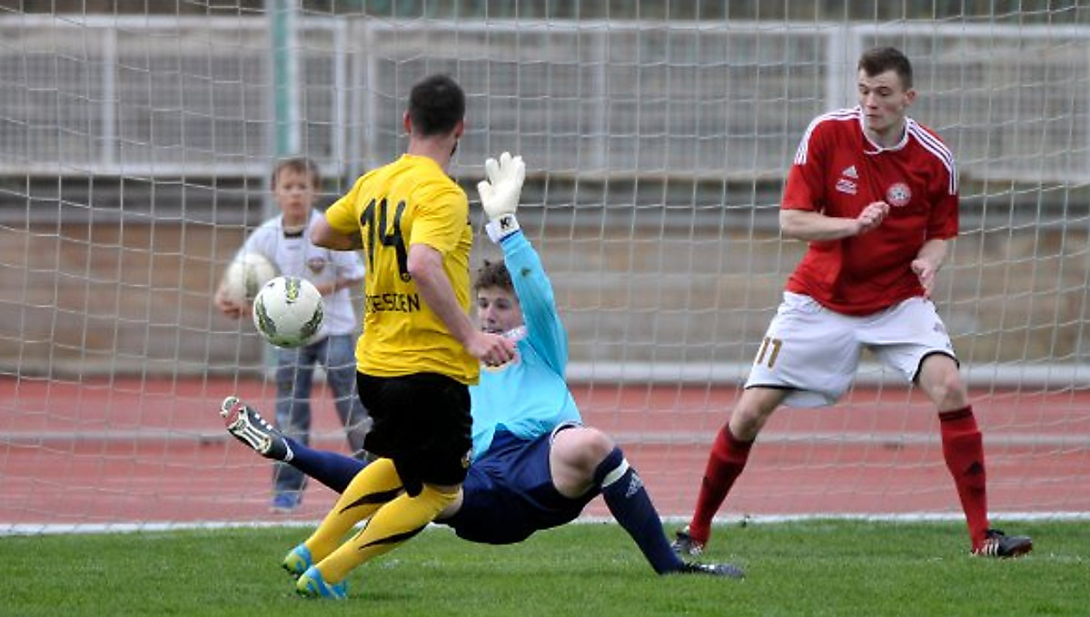 Tore: 1:0 Labisch (23.), 2:0 Zerna (37./Foulelfmeter), 3:0 Zerna (55.), 4:0 Heller (59.), 5:0 Worbs (66./Foulstrafstoß), 6:0 Heller (76.), 7:0 Worbs (78.).