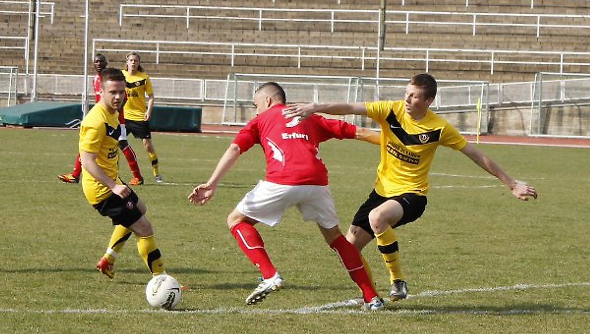 Den „Tag der offenen (Abwehr-) Tür“ hatten sich die Schwarz-Gelben gänzlich anders vorgestellt. Zwar sahen die 116 zahlenden Zuschauer sechs Tore, allerdings nur zwei für die Dynamos. Diese mussten sich am Ende den rot-weißen Erfurtern mit 2:4 geschlagen geben.