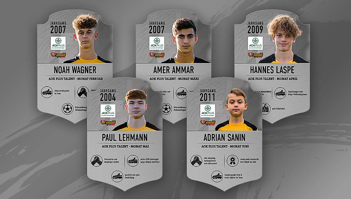 Die „Nachwuchs Akademie“ der SG Dynamo Dresden zeichnet monatlich – gemeinsam mit ihrem offiziellen Gesundheits- und Nachwuchspartner AOK PLUS – einen „Nachwuchsspieler des Monats“ aus. Im Rahmen des Saisonauftaktes der Drittliga-Profis am Samstag, dem 23. Juli 2022, werden beim Heimspiel gegen den TSV 1860 München die Sieger der Monate Februar bis Juni für ihre besonderen Leistungen geehrt.