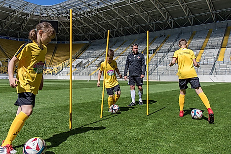 Am Mittwochnachmittag hatten 30 Kinder aus dem Förderzentrum für Körperbehinderte in Dresden ein unvergessliches Erlebnis. Die DYNAMO DRESDEN FUSSBALLSCHULE lud die Kinder zu einer Stadionführung auf die Lennéstraße ein. Von den Katakomben über den K-Block bis zur Pressetribüne konnten sich die Kids alles anschauen. Damit hat die Fußballschule von Ralf Hauptmann ihr Engagement im Förderzentrum fortgesetzt. Zuletzt war das Team der Fußballschule bei zwei Sporttagen in der Einrichtung auf der Fischhausstraße dabei.„Es geht uns darum, für diese Kinder Erlebnisse zu schaffen, die in ihrem Alltag sonst nicht ohne weiteres möglich sind“, erklärt Ralf Hauptmann das zentrale Anliegen. „Aufgrund ihrer Behinderung können die Kindern und Jugendlichen des Förderzentrums manche Dinge nicht so einfach erleben, wie andere Kinder in ihrem Alter. Die Fußballschule möchte ihnen dabei helfen, die Freude aus solchen Erfahrungen mit herüber zu nehmen in den Alltag, den es für sie zu meistern gilt.“