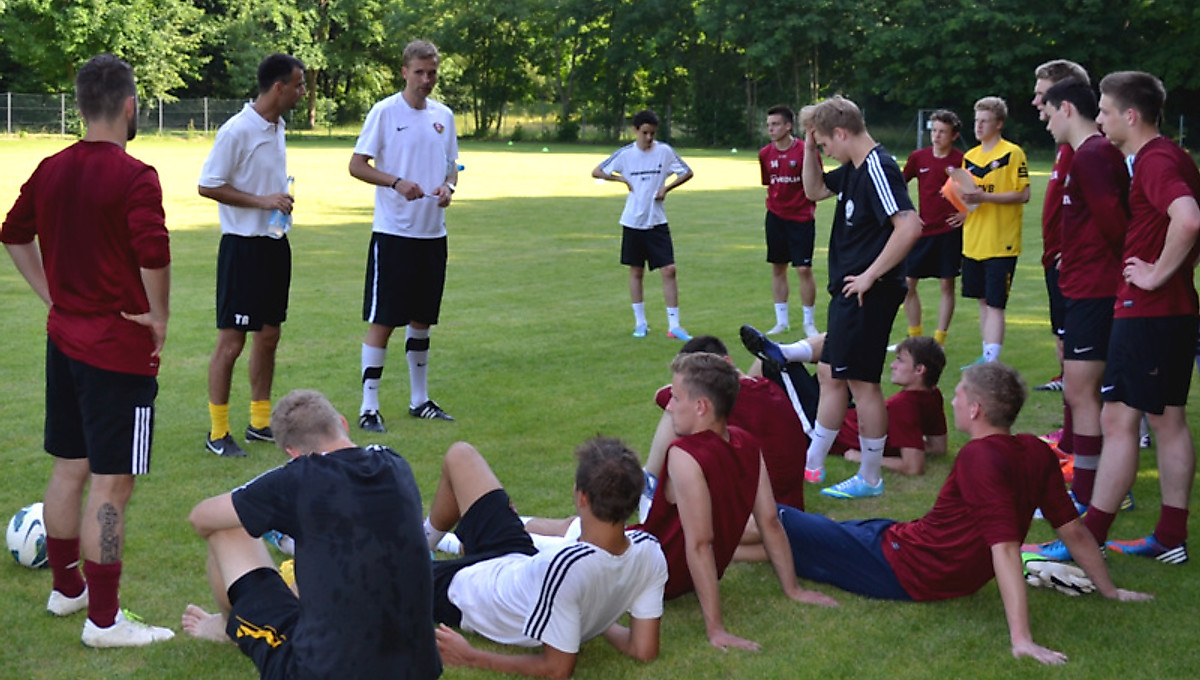 Am Mittwochnachmittag begrüßte das Trainergespann David Bergner und Béla Virág die Spieler der U19 auf dem Trainingsgelände der Profimannschaft im Großen Garten zur vorletzten Trainingseinheit vor der Abfahrt nach Braunschweig. Bei heißen Temperaturen um die 30 Grad fehlte mit Kevin Kratz lediglich ein Spieler aus Krankheitsgründen.