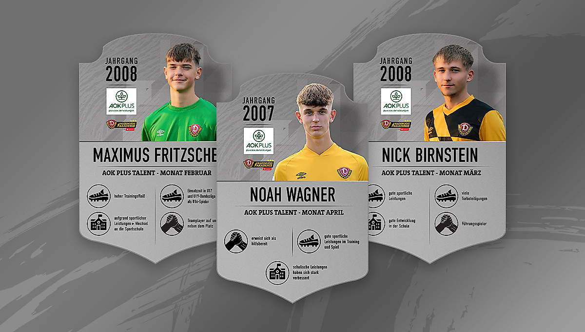 Wenn die Drittligaprofis am Samstag, dem 18. Mai 2024, ab 13.30 Uhr ihr letztes Spiel der Drittligasaison 2023/2024 gegen den MSV Duisburg bestreiten, werden auch gemeinsam mit dem Gesundheits- und Nachwuchs Partner AOK Plus die Nachwuchsspieler des Monats aus dem Februar, März und April im Stadion dabei sein und vor dem Anpfiff geehrt.