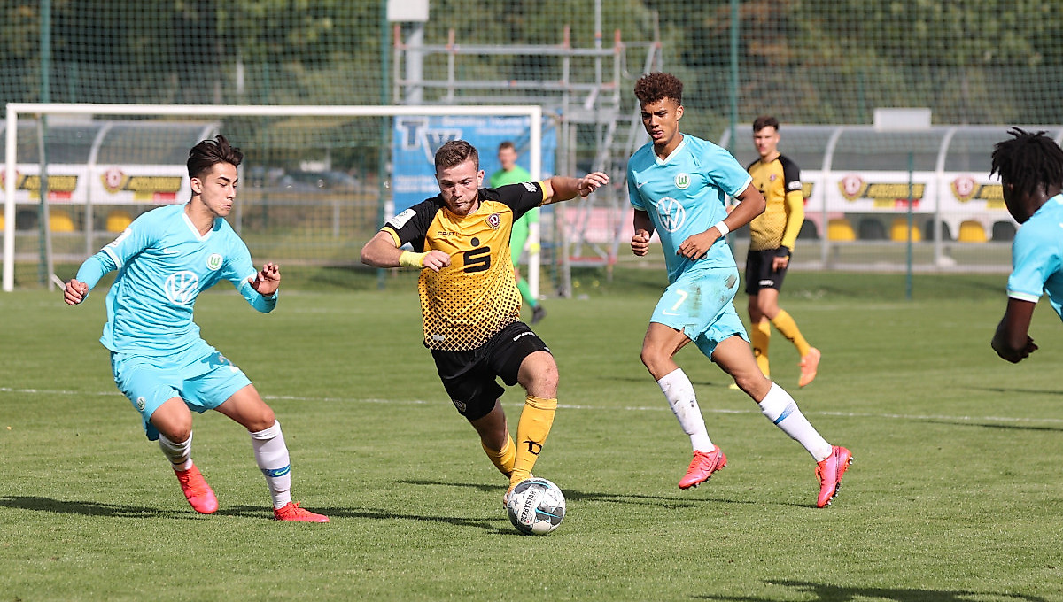 Dynamos U19 musste sich am Samstag in der 1. Runde des DFB-Pokals auf heimischem Platz knapp dem VfL Wolfsburg mit 2:3 (1:0) geschlagen geben.{media-right-nachwuchs-adv}Dabei legte die Mannschaft von Trainer Willi Weiße von Beginn an einen mutigen Auftritt hin und belohnte sich nach 19 Minuten mit dem Treffer von Johann Saalfrank. Kurz nach dem Seitenwechsel schraubte Phil Harres per Kopf sogar auf 2:0.