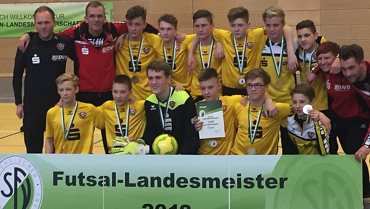Die U15-Mannschaft von Trainer Daniel Holke und die U13-Mannschaft von Trainer Jan Hille wurden jeweils sächsischer Futsal-Landesmeister 2018.