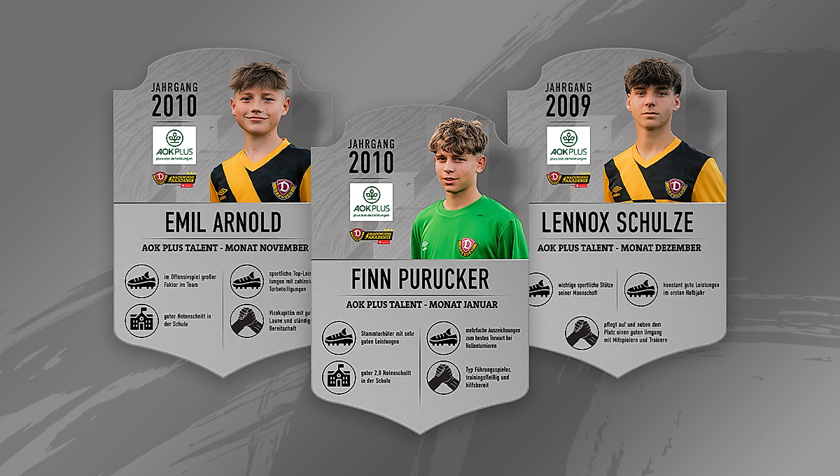 Emil Arnold, Lennox Schulze und Finn Purucker sind AOK PLUS Spieler des Monats