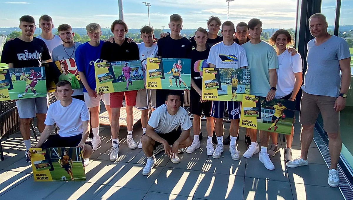 Die SGD hat die U19-Spieler des älteren „2002“er-Jahrgangs verabschiedet und sich mit einem Abschiedspräsent für die Leistungen und den Einsatz in den vergangenen Jahren bei den Jungs bedankt.{media-right-nachwuchs-adv}Denn: Auch in diesem Jahr liegt sowohl in der A-Junioren-Bundesliga als auch im DFB-Pokal, wo die SGD knapp mit 0:2 gegen den VfL Wolfsburg unterlag, ein bewegtes Jahr hinter Dynamos U19. Nachdem der Pflichtspielbetrieb seit dem 30. Oktober 2020 bedingt durch die Corona-Pandemie ruhte, zeigten die Schwarz-Gelben in einer internen Testspielrunde gegen Vereine wie Energie Cottbus, den FC Erzgebirge und den Chemnitzer FC sowie Union Berlin ihr Können.
