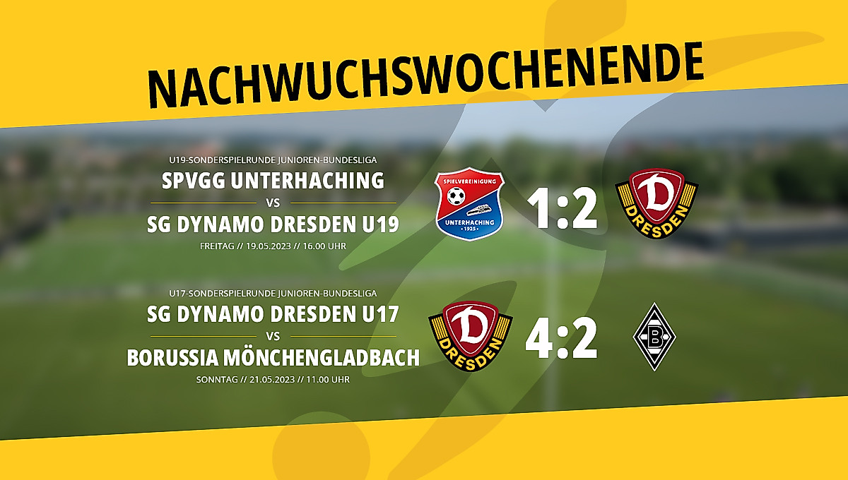 Am vergangenen Nachwuchswochenende haben sowohl die U19 als auch die U17 der SGD ihre Partien der Sonderspielrunde gewonnen. Nachdem die A-Junioren bereits am Freitag bei der SpVgg Unterhaching erfolgreich waren, besiegten die B-Junioren am Sonntag Borussia Mönchengladbach. Für beide Teams steht in den kommenden Wochen noch ein großes Highlight bevor.