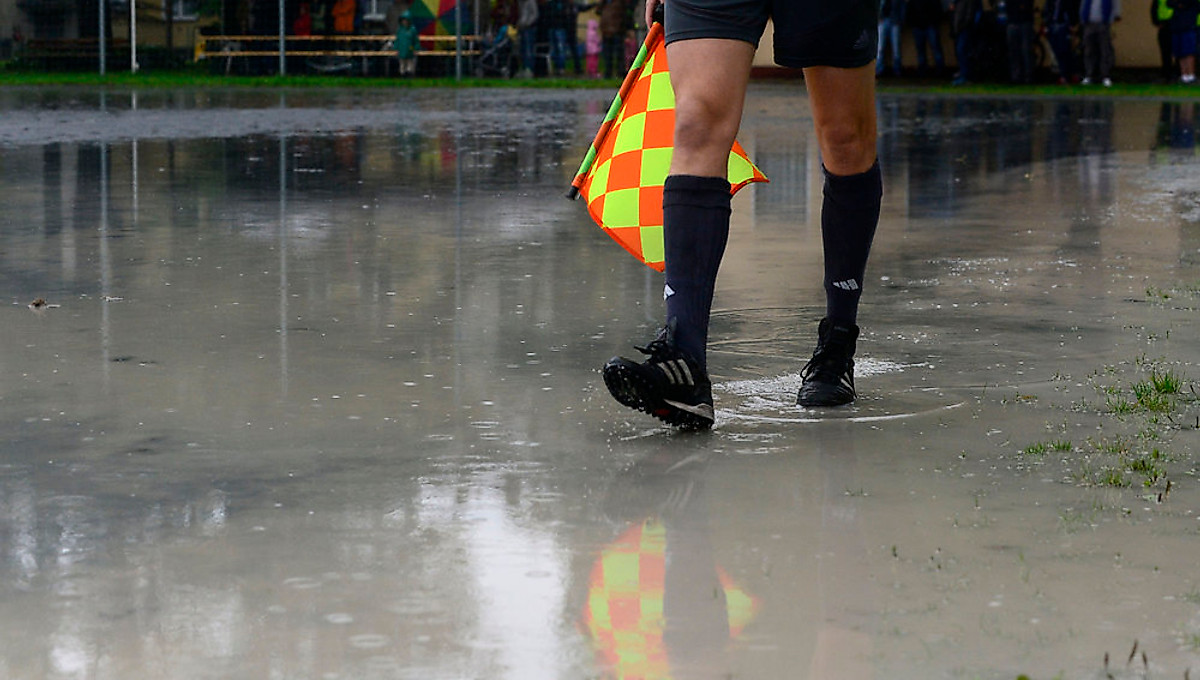 Die Begegnung im Johannes-May-Stadion zu Freital-Hainsberg kann aufgrund der ausdauernden Niederschläge nicht angepfiffen werden.