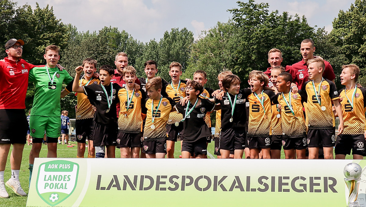 Die U13-Mannschaft der SGD hat mit einem 3:2-Sieg gegen Soccer for Kids Dresden den AOK PLUS Landespokal der D-Junioren gewonnen.{media-right-nachwuchs-adv}Am vergangenen Wochenende schlossen die Jungs von Trainer Alexander Kosbab in Abtnaundorf an der Sportschule Egidius Braun eine durch die Corona-Widrigkeiten geprägte Spielzeit erfolgreich ab.