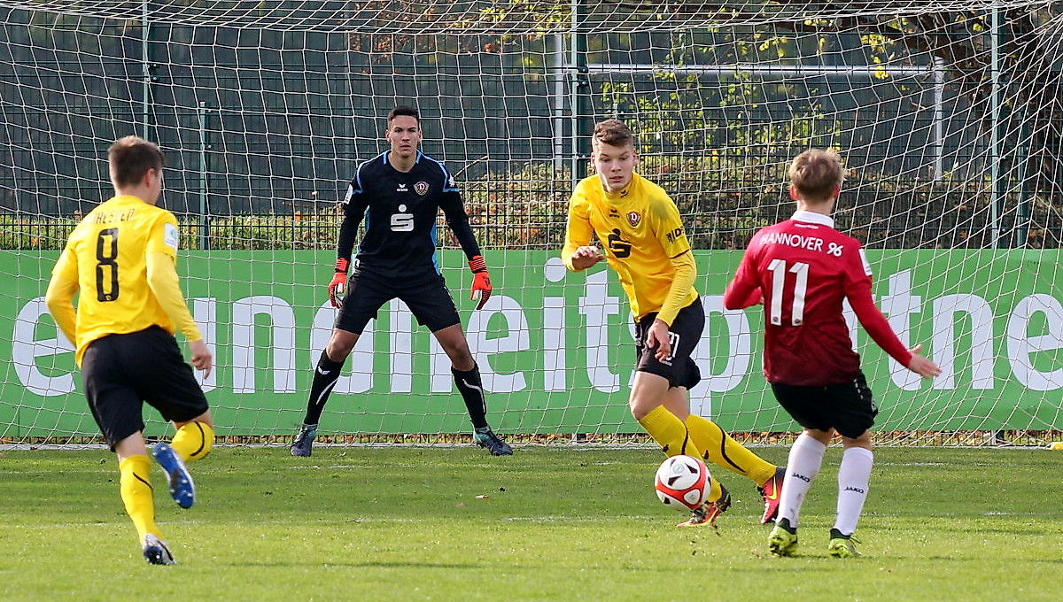 Dynamos U17-Mannschaft trennte sich ebenfalls am Samstag torlos unentschieden von Hannover 96 – ein Punkt, mit dem die Mannschaft von Trainer Cristian Fiel an diesem Tag sehr gut leben konnte. Dynamo fand kaum Zugriff aufs Spiel und profitierte davon, dass die Gäste ihre Vorstöße nicht konsequent zu Ende spielten. Glück hatte die SGD insbesondere nach einer Viertelstunde, als Hannover einen Strafstoß über den Kasten setzte.