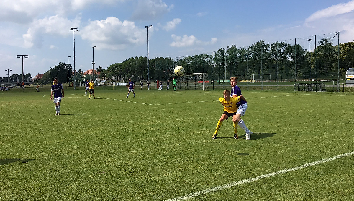 Durch viel Einsatzbereitschaft der Schwarz-Gelben wurde es gegen den erwartet starken Gegner über weite Strecken ein Spiel auf Augenhöhe. Die Gäste gingen nach einem Eckball in Führung, aber Dynamo steckte zu keiner Sekunde auf. Denkbar spät, aber verdient, fiel mit der letzten Aktion des Spiels der Ausgleich: Jonas Jiranek setzte den Ball aus knapp 16 Metern an die Lattenunterkante und von dort hinter die Torlinie.