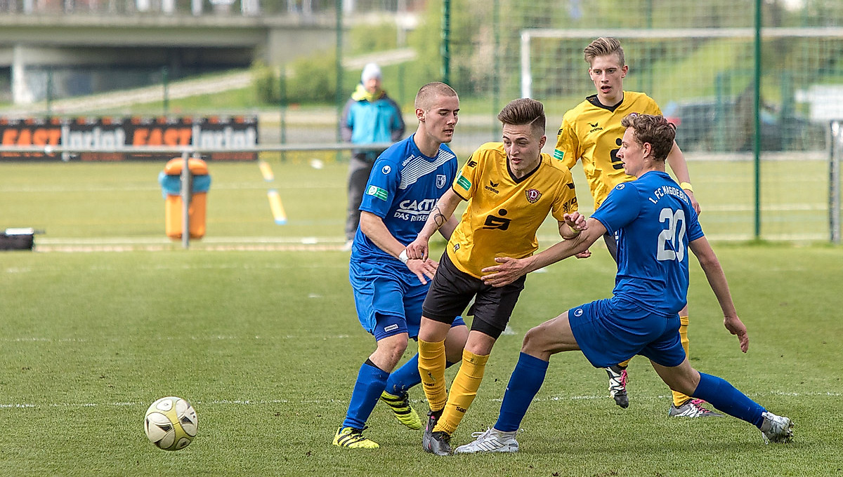 Dynamos U19-Mannschaft hat im Abstiegskampf am Samstag einen verdienten Punkt eingefahren. Gegen Hannover 96 spielte die Mannschaft von Trainer Matthias Lust im Sportpark Ostra 1:1 (1:1).