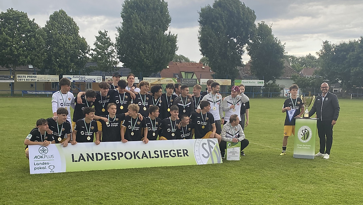 Die U17 der Sportgemeinschaft ist Sachsenpokalsieger 2024/25! Im Endspiel gegen den Regionalligisten Lok Leipzig setzte sich Schwarz-Gelb am Ende souverän mit 3:1 durch und durfte im Regen von Wittichenau den Pokal hochhalten.