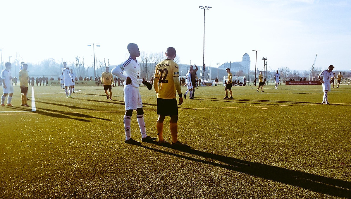 Dynamos U17-Mannschaft hat sich in der B-Junioren-Bundesliga am Samstag im Sportpark Ostra mit 2:0 (0:0) gegen den Niendorfer TSV durchgesetzt. Durch den hart erarbeiteten, aber hoch verdienten Erfolg gehen die Schützlinge von Trainer Cristian Fiel mit drei Siegen in Folge in die Winterpause.Gegen den Tabellenletzten übernahm die SGD umgehend die Spielkontrolle, kam jedoch kaum zu klaren Chancen. Ein Kopfball nach einem Standard senkte sich auf den Querbalken, bei Versuchen aus der Distanz zeigte sich der Gästeschlussmann sicher. Allerdings hätte es nach Foulspiel an Max Ziehm Elfmeter geben müssen, doch weil der Schwarz-Gelbe nicht zu Boden ging, blieb der Pfiff aus. Auf der Gegenseite hatte Niendorf in einer kurzen Druckphase die gefährlichste Szene des ersten Durchgangs. Nach einer Ecke holten die Gäste den zweiten Ball, beim Abschluss aus 16 Metern flog Stefan Kiefer prächtig und lenkte die Kugel um den Pfosten.