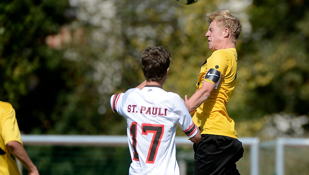 Dynamos U17-Mannschaft hat sich am Samstag zuhause mit 2:2 (1:1) vom FC St. Pauli getrennt. Die Mannschaft von Trainer Cristian Fiel bewies viel Moral und egalisierte zweimal einen Rückstand. Vor der Pause verwandelte Vasil Kusej einen Foulelfmeter zum 1:1, Justin Jacob war gefoult worden. Nach neuerlichem Rückstand im zweiten Durchgang gelang Nathe wenige Minuten vor Abpfiff mit einem sehenswerten Distanzschuss der verdiente Ausgleich. Der Ball schlug im Giebel ein, Gäste-Keeper Schmidt war chancenlos.