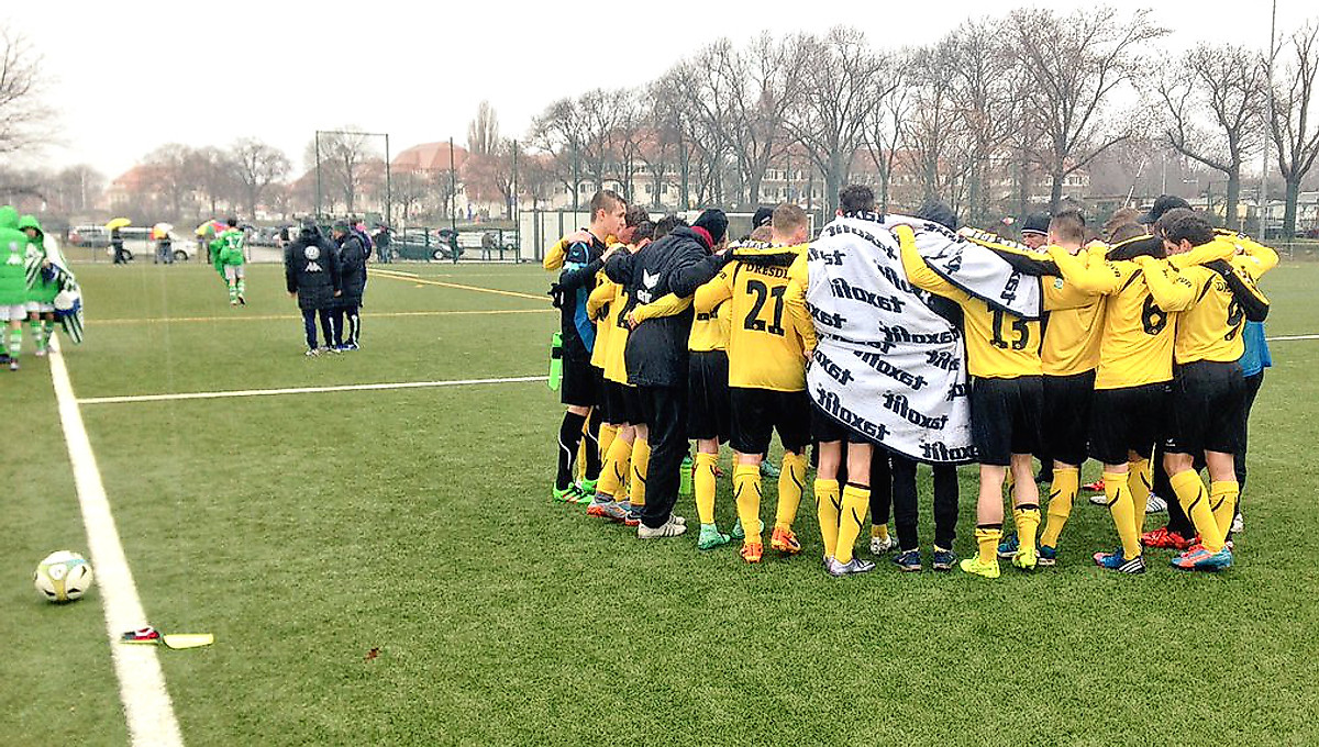 Dynamos U17-Mannschaft unterlag im Heimspiel am Sonntag Tabellenführer VfL Wolfsburg mit 2:3 (0:2). Die Gäste gingen fast vom Anstoß weg in Führung, als sich ein Flankenball ins Netz senkte, nach einer halben Stunde erhöhte der Favorit auf 2:0. Doch die Schwarz-Gelben zeigten über 80 Minuten eine beherzte und spielerisch ansprechende Leistung und kämpften sich zurück ins Spiel. Zuerst köpfte Jannik Käppler einen Eckball zum Anschluss ein, zwei Minuten später sorgte Max Kessler für den Doppelschlag: Nach einem Angriff wehrten die Jung-Wölfe eine Großchance noch ab, aber Dynamo hielt den Ball im Spiel und brachte die Kugel erneut vors Tor, wo der Rechtsaußen zum Ausgleich vollstreckte.