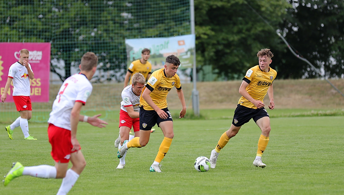 Es sollte einfach nicht sein: Die U19-Mannschaft der SGD unterlag am Sonntag im Sachsenpokal-Finale mit 0:4 (0:2) auf dem Gelände der Sportschule „Egidius Braun“ des Sächsischen Fußball-Verbandes gegen RasenBallsport Leipzig.{media-right-nachwuchs-adv}Die Leipziger starteten griffiger in die Partie, Dynamo aber hielt gut dagegen. Es entwickelte sich in der Anfangsphase eine intensive Partie, in der die Messestädter durch Wosz ihre erste dicke Torchance herausspielten: Wosz setzte den Ball ans Lattenkreuz (8.).