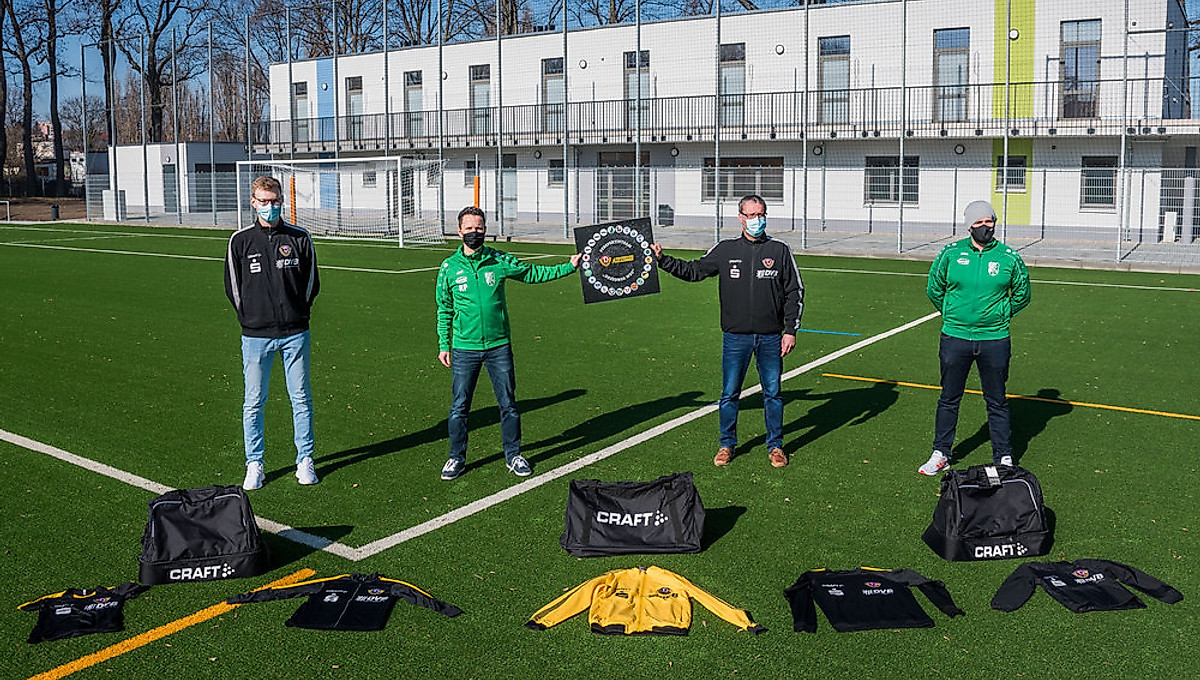 Am Dienstag untermauerte Dynamo die Zusammenarbeit zudem mit einem Dankeschön: René Schäfer, Leiter Grundlagenbereich bei der SGD, und Florian Born, Trainer von Dynamos U11 und Verantwortlicher „Dresdner Weg“, übergaben dem FV Löbtauer Kickers e.V. stellvertretend für alle Partnervereine CRAFT-Trainingstaschen und -klamotten. In den kommenden Tagen und Wochen werden diese dann auch bei den anderen 20 Klubs eintreffen.