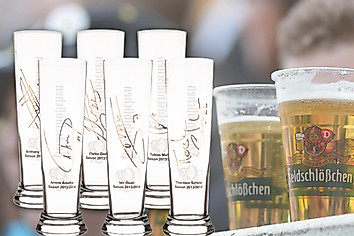 Ab sofort gibt es wieder in ausgewählten Getränkemärkten zu jedem gekauften Kasten Feldschlößchen (20x0,5l) je eins von sechs Dynamo-Editionsgläsern gratis dazu. Dabei handelt es sich um ein exklusives und trendiges 0,33-Liter Feldschlößchen-Glas je eines von sechs aktuellen Dynamo-Profis:
