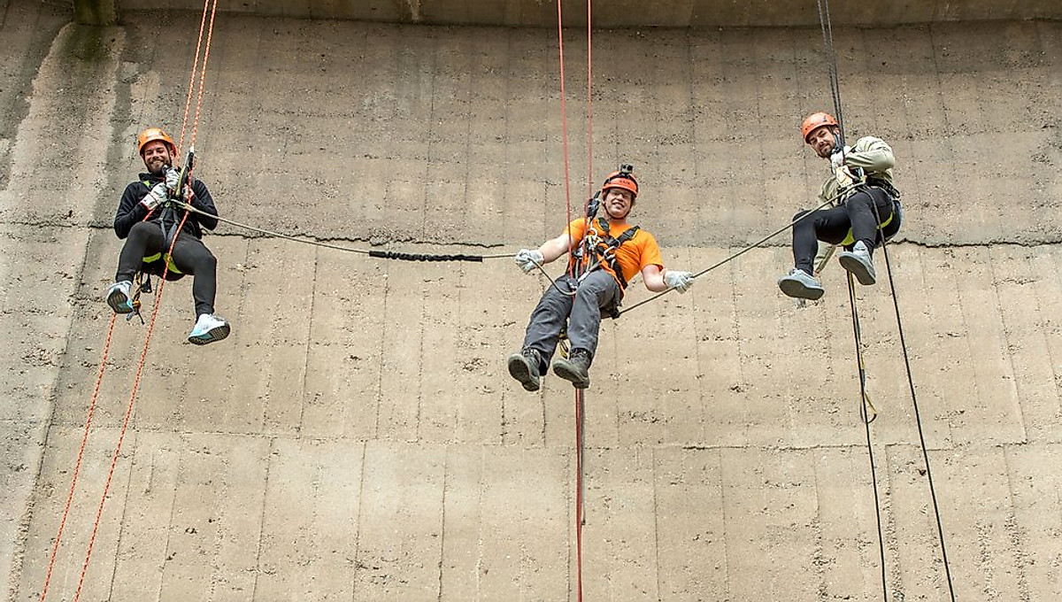 Das Dresdner Unternehmen „Vertikalis“ ist Spezialist für gerüstlose Höhenarbeiten mit alpintechnischen Hilfsmitteln. Schwindelerregende Höhen gehören für die Männer der Vertikalis GmbH zum Alltag. „Dafür musst du gemacht sein, diese Arbeit nötigt mir allerhöchsten Respekt ab“, erklärte Patrick Wiegers.