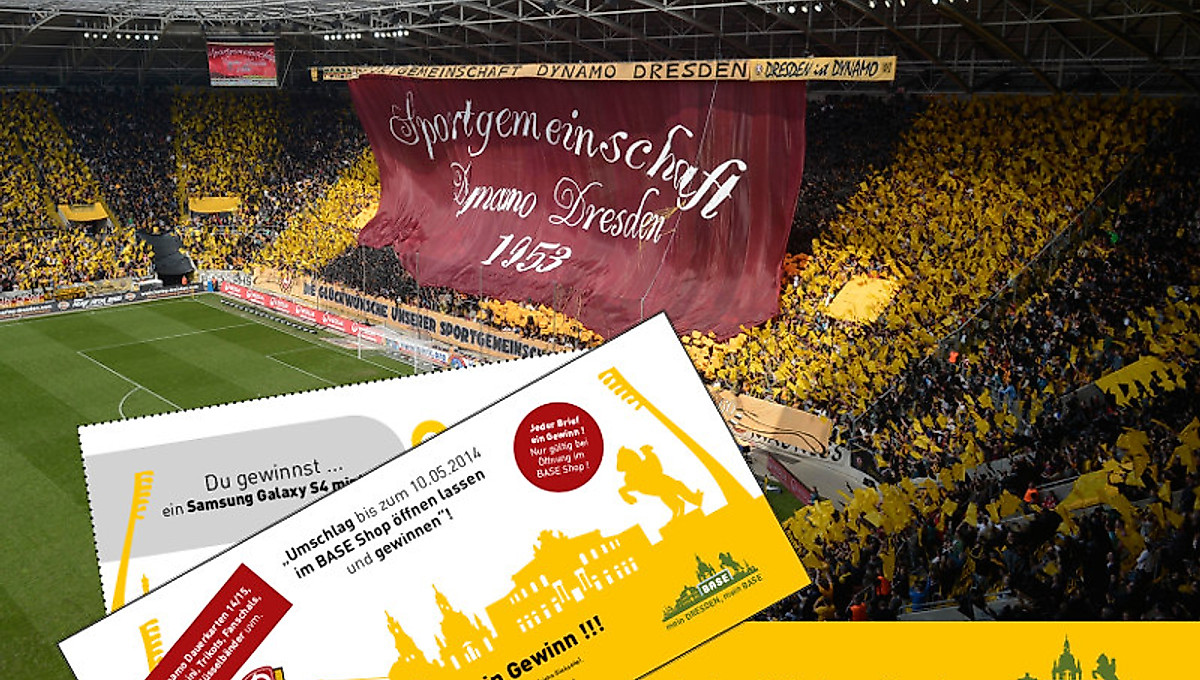 Dafür werden im Stadion Gewinnspielumschläge ausgelegt, die ihr in den teilnehmenden Dresdner BASE Shops öffnen lassen könnt. Das Besondere: In wirklich JEDEM Umschlag steckt ein Preis. Angefangen bei zahlreichen Kleingewinnen und diversen Dynamo-Fanartikeln, Dauerkarten für die Saison 2014/15, bis hin zum brandneuen Samsung Galaxy S4 mini.