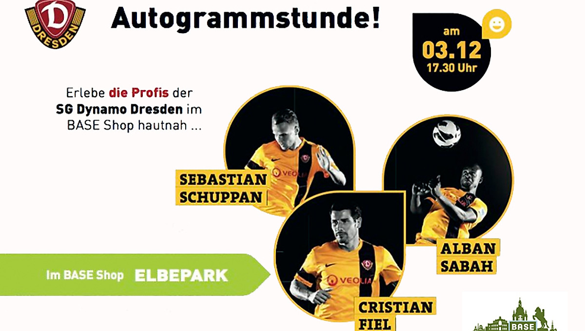 Autogrammstunde mit Cristian Fiel, Alban Sabah und Sebastian Schuppan | BASE Shop im ELBEPARK Dresden, Dienstag, 03.12., 17.30-18.30 Uhr