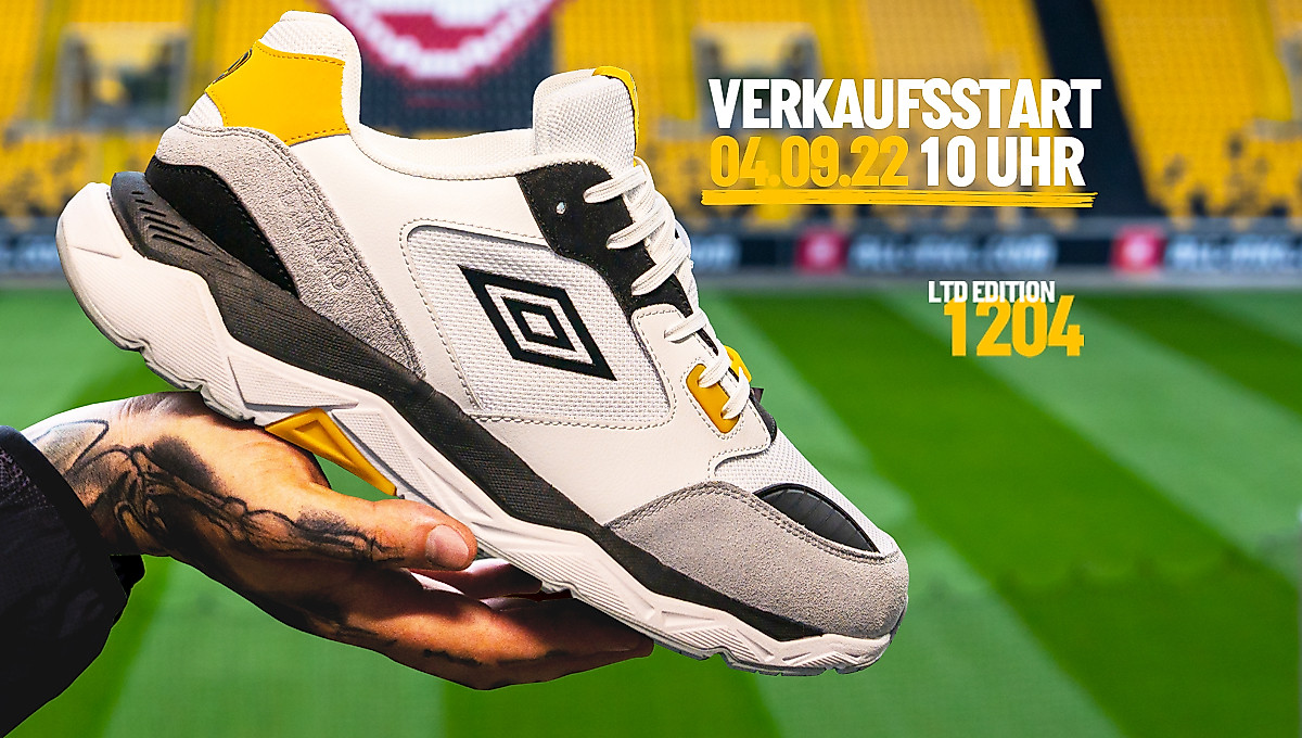 Der in Kooperation mit Ausrüster Umbro und dem Dresdner Sneaker-Store „Schrittmacher“ entwickelte einzigartige Dynamo-Sneaker steht voll und ganz im Zeichen der „Legende aus Elbflorenz“ und somit für ein erstmaliges Sneaker-Highlight in der Geschichte des Vereins. Ein Sammlerstück aus der Stadt, für die Stadt und das gesamte „Dynamoland“.
