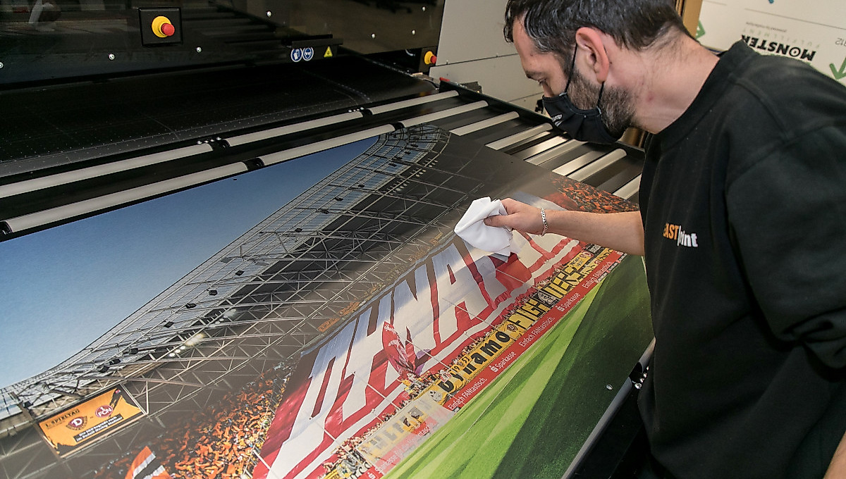 „Vorbeischauen in unserem neuen Dynamo-Shop lohnt sich auf jeden Fall, denn Dynamo Dresden partizipiert an den gesamten Verkäufen. Die vollständig individualisierbaren ‚Dynamo Player Cards‘ sind gerade total angesagt. Ob ein riesiges Stadionbild für das Wohn- oder Kinderzimmer oder eine Choreografie für das Büro oder den Besprechungsraum, bei uns gibt es alles, was das Dynamo-Herz begehrt“, erklärte Maik Vogel, Geschäftsführer der East|print GmbH, die als Dresdner Druckerei den Shop als Lizenznehmer betreibt.