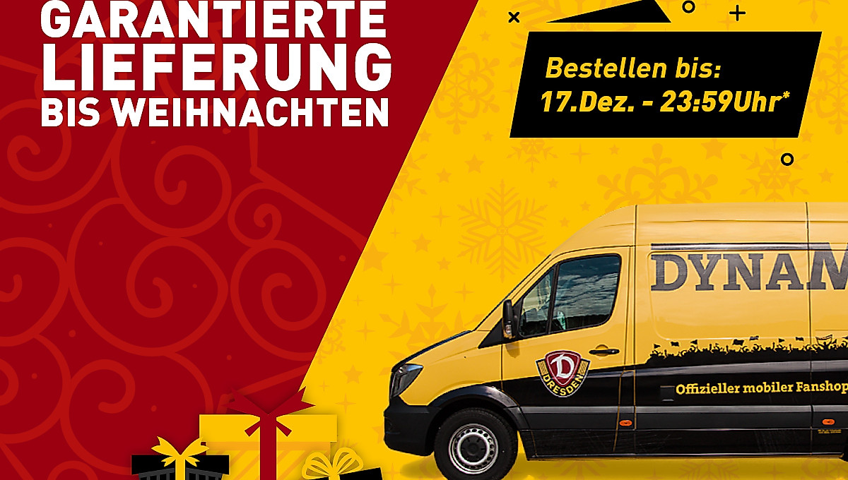 Aber aufgepasst, liebe Dynamo-Fans: Der Paketdienstleister DHL hat darüber informiert, dass wegen des deutlich erhöhten Paketaufkommens zur Weihnachtszeit in diesem Jahr lediglich Bestellungen aus Deutschland, die bis einschließlich 17.12. beim Fanshop eingehen, mit Sicherheit pünktlich unter dem Weihnachtsbaum landen werden. (Ausgenommen sind Trikot-Drucke)