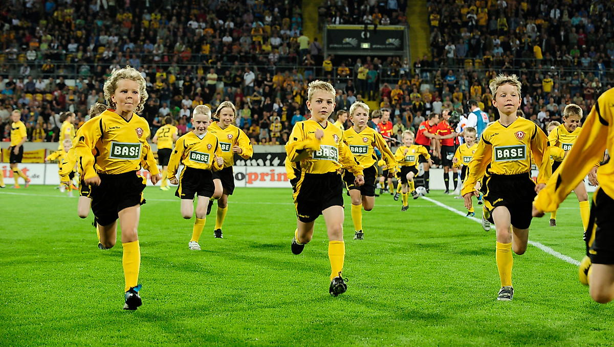 Für die kleinen Dynamo-Fans hat sich BASE eine besonders schöne Aktion ausgedacht: BASE sucht Einlaufkinder für Dynamo Dresden! Die Bewerbung hierfür ist ganz leicht – einfach in einem der elf BASE Shops in Dresden & Umgebung vorbeischauen und dein Kind anmelden! Und vielleicht wird ja genau dein Kind für dieses unvergessliche Erlebnis ausgelost und kann im Stadion seinen Stars ganz nah sein.