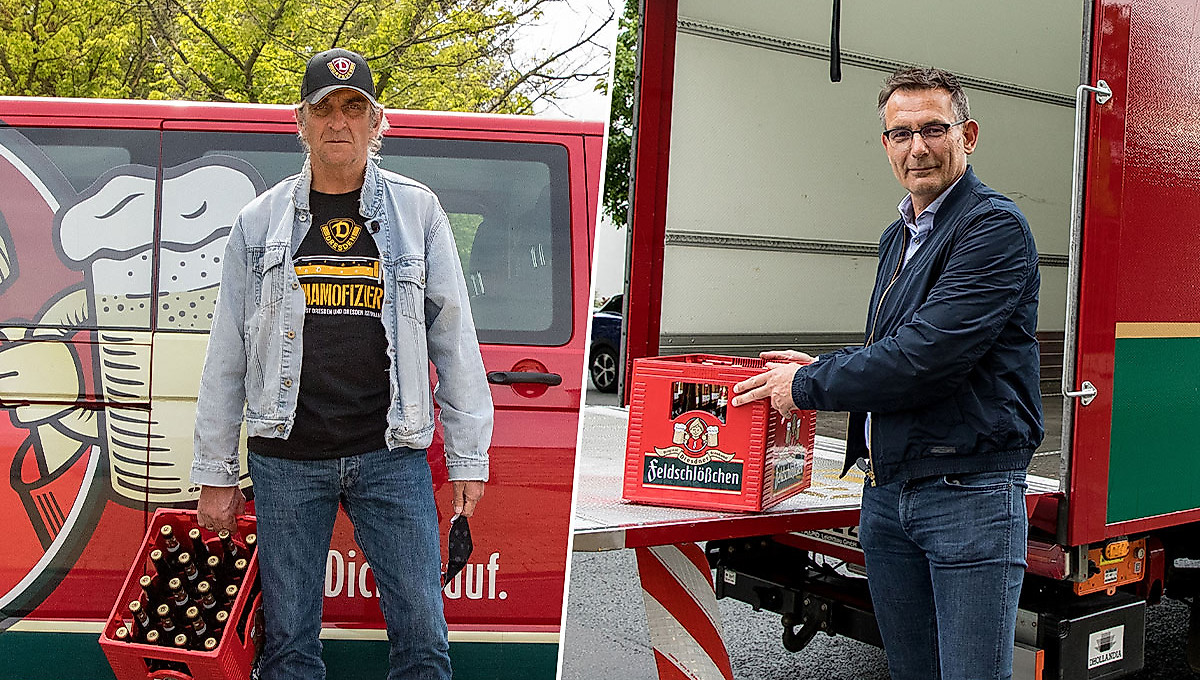 „Let’s go!“, ruft Dynamos Sportgeschäftsführer stilecht mit Basecap und Jeansjacke gekleidet, zieht die Autotür des kleinen VW-Busses hinter sich zu und schon braust der „Feldschlößchen-Express“ los. Zusammen mit Geschäftsführer-Kollege Michael Born hat sich „Mingus“ in den letzten Tagen aufgemacht, die Gewinner der „Wir sagen Danke“-Aktion zu beliefern.In drei Transportern fuhren Minge und Born sowohl Dresden als auch das Umland der sächsischen Landeshauptstadt ab und überraschten 24 Dynamo-Fans jeweils mit einem Kasten „Feldi“.