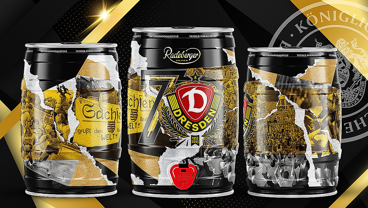 Das klassische Fass mit Zapfhahn ist ab dem 1. März im Dynamo-Fanshop, im Radeberger Onlineshop sowie in allen DDV-Lokalen erhältlich. Im Sonderdesign zum 70. Jubiläum der SGD verstecken sich zahlreiche Erinnerungen aus der schwarz-gelben Vereinsgeschichte – von Meisterschaften, Pokalsiegen und weiteren emotionalen Momenten.