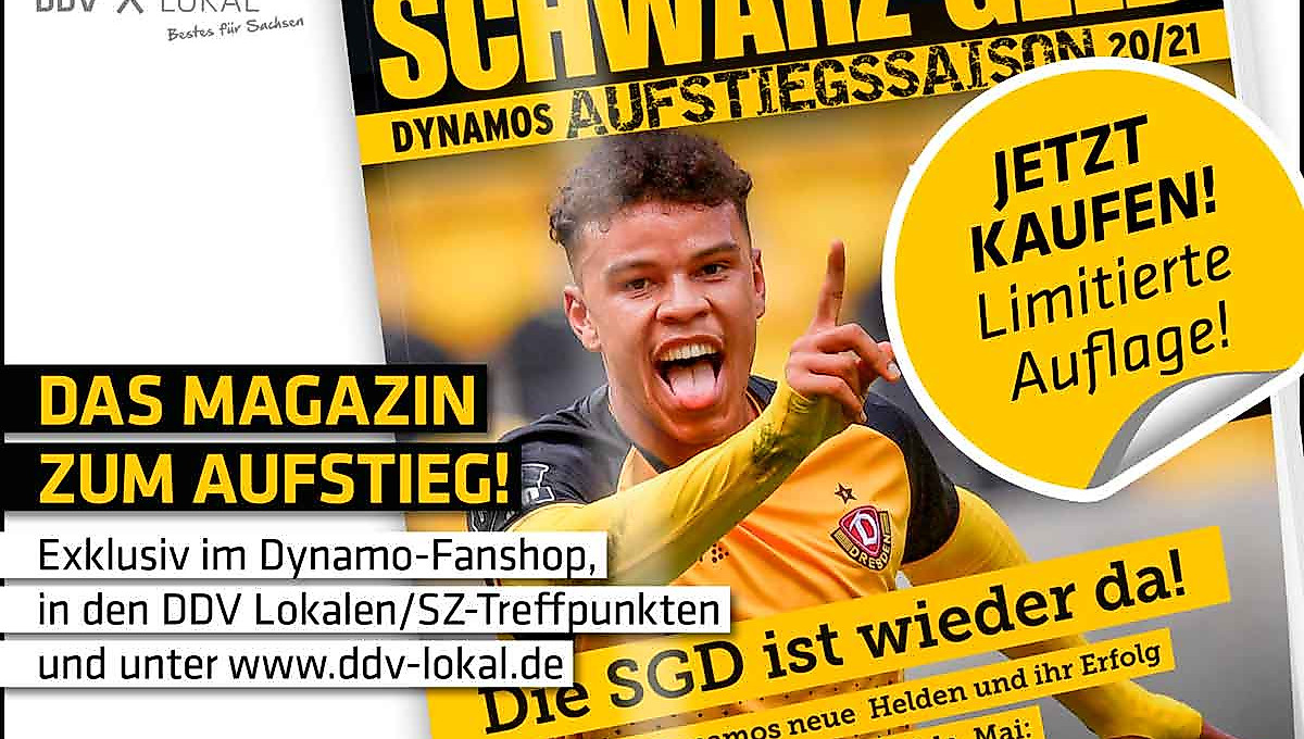 Aus dem Hause von Dynamos Exklusiv-Partner DDV-Mediengruppe GmbH & Co. KG erscheint von der Sächsischen Zeitung auch in diesem Jahr wieder mit dem Magazin „SCHWARZ-GELB“ ein ausführlicher Rückblick auf die vergangene Aufstiegs- und Meistersaison 2020/21 der Sportgemeinschaft.Abstieg, Spitzenreiter, Trainerwechsel, Aufstieg – Auf 126 Seiten findet ihr alles Wissenswerte sowie viele weitere lesenswerte Geschichten rund um ein außergewöhnliches schwarz-gelbes Jahr.
