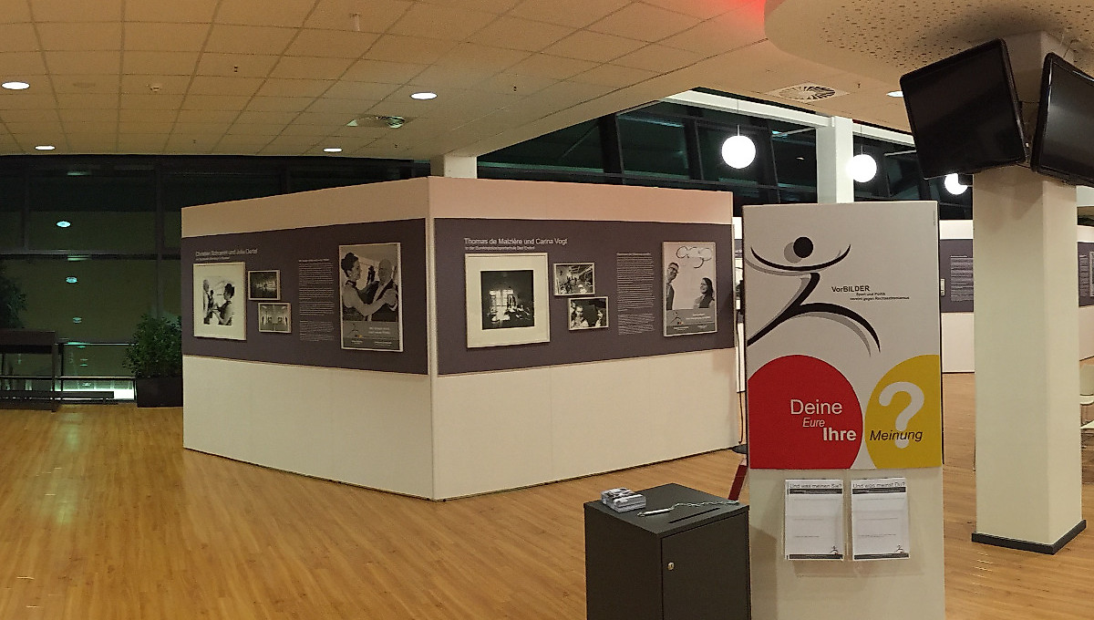 An drei Tagen ist im Stadion Dresden die Fotoausstellung „Sport und Politik vereint gegen Rechtsextremismus“ zu sehen. 86 Schwarz-Weiß-Porträts zeigen 22 Duos aus Sport und Politik, die sich mit individuellen Aussagen gegen Fremdenfeindlichkeit und Diskriminierung, für Fairplay, Demokratie und Menschenwürde positionieren.