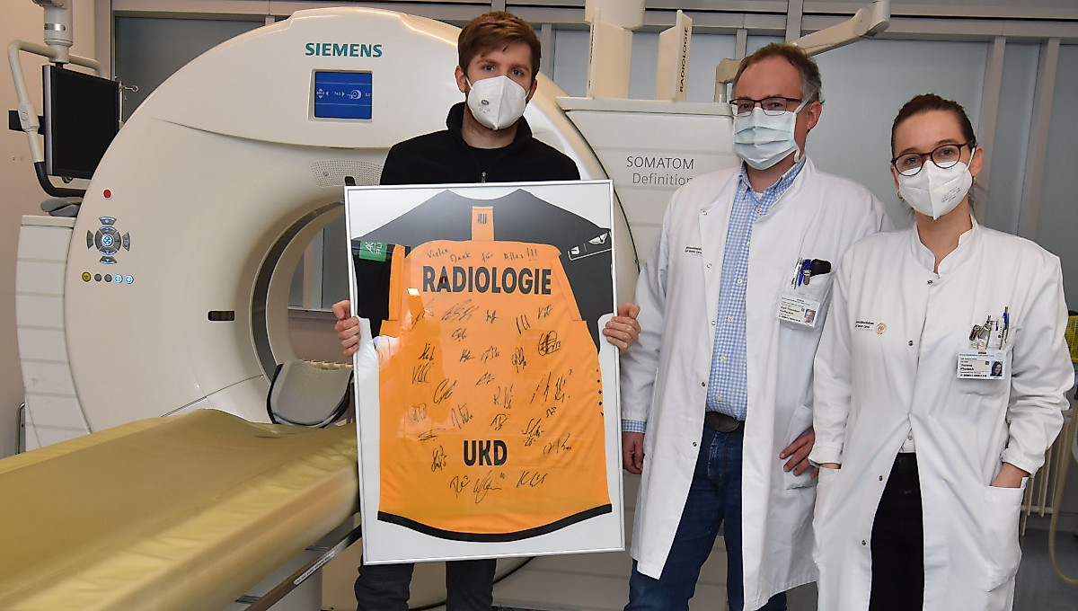 „Wir haben in dieser Spielzeit mit relativ vielen Verletzungen zu kämpfen und wissen daher die schnelle und vollumfängliche, zuverlässige sowie äußerst kompetente Betreuung des gesamten Teams des Universitätsklinikums zu schätzen. Hervorzuheben ist das medizinische Personal der Sportmedizin und Radiologie, die sich in großartiger Art und Weise neben ihrem eigentlichen Pensum für unsere Spieler einsetzen. Dr. Onays Al-Sadi ist als einer unserer Mannschaftsärzte das Bindeglied zwischen Verein und Klinikum. Ein großes Dankeschön geht darüber hinaus an Herrn Professor Dr. Ralf-Thorsten Hoffmann und seinem Team im Institut und Poliklinik für Diagnostische und Interventionelle Radiologie, das gerade in den zurückliegenden Wochen und Monaten eine große Unterstützung war“, so Ralf Becker.