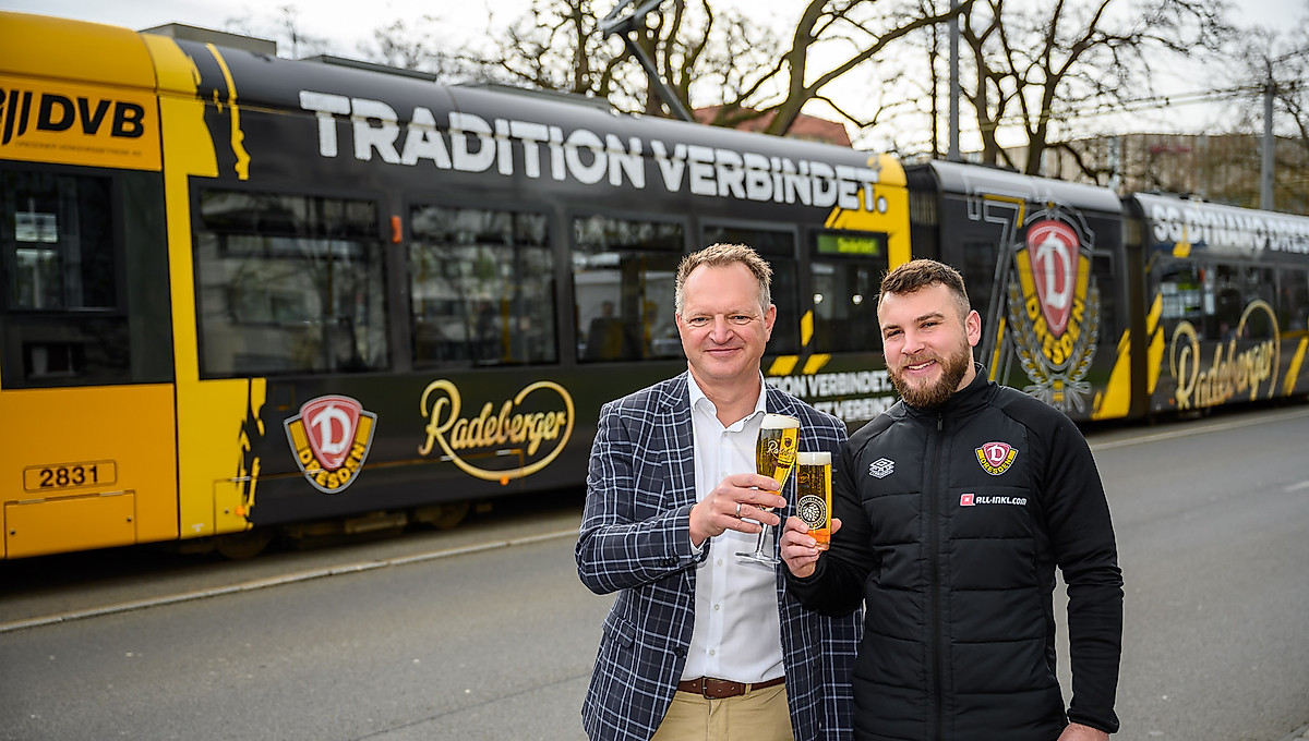 Der Slogan „Tradition verbindet. Leidenschaft vereint.“ strahlt nicht nur in großen Lettern vom Stadtbahnwagen, sondern steht vor allem für die enge Partnerschaft zwischen der SG Dynamo Dresden und ihrem Exklusiv- und Bierpartner Radeberger.