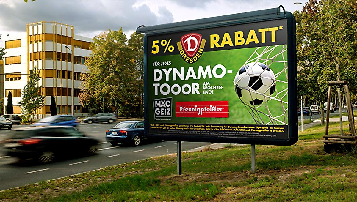 MÄC GEIZ und Pfennigpfeiffer gewähren 5 % Rabatt für jede Torwertung für Dynamo-Dresden eines Liga-Spiels im Februar (04./10./18./24.). Dieser Rabatt gilt am darauffolgenden Montag nach dem jeweiligen Spiel in allen Filialen von MÄC GEIZ und Pfennigpfeiffer in Dresden. Der Rabatt ist auf maximal 5 Tore bzw. 25% Rabatt pro Spiel begrenzt. Der Rabatt wird automatisch an der Kasse abgezogen. Nicht kombinierbar mit weiteren Rabatten und Aktionen. Ausgenommen sind preisgebundene Artikel wie Tabakwaren, Pfand, Zeitschriften, Bücher sowie Gutscheinkarten, Geschenkgutscheine, E-Voucher, DHL-Brief- & Paketmarken, Serviceleistungen und Artikel der Marken J. Club.