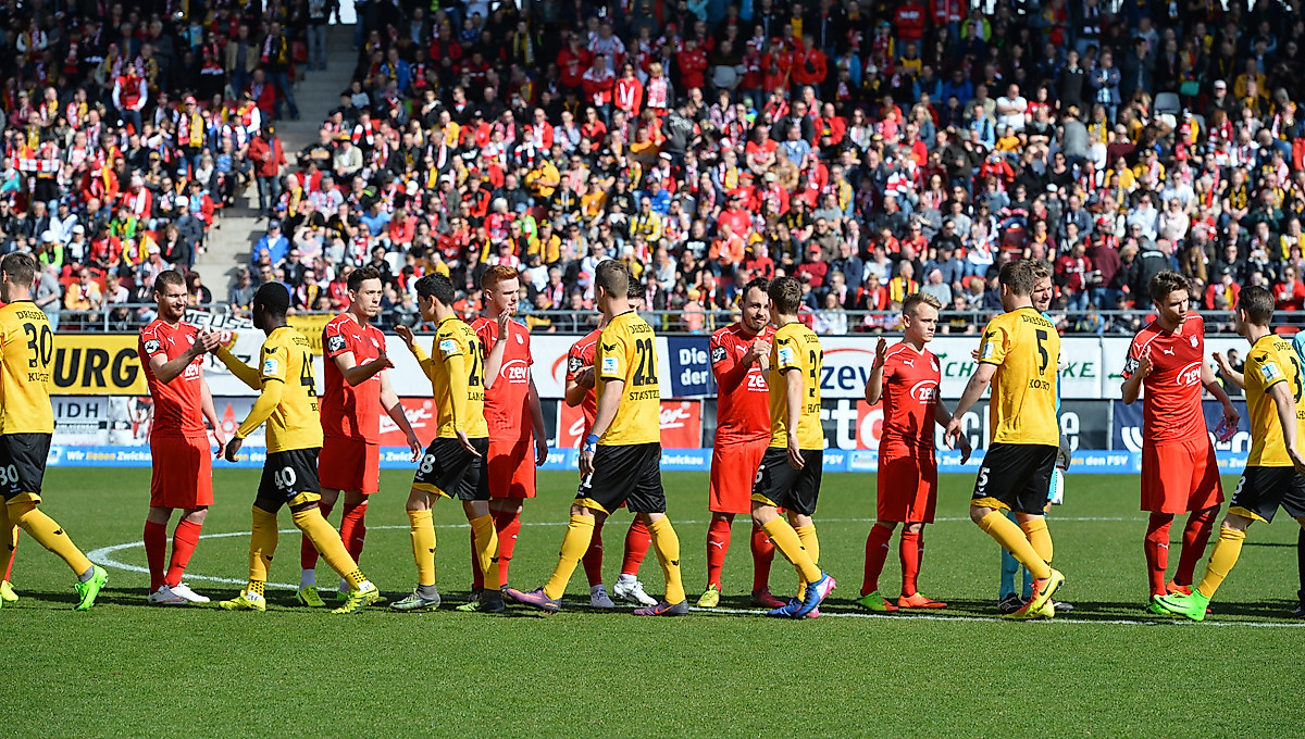 Kurz darauf hatte Teixeira das zweite Tor auf der Fußspitze, sein Heber über FSV-Keeper Unger landete jedoch am Querbalken (74.). Die Partie blieb auch danach sehenswert, weil das beste Rückrundenteam der 3. Liga Chancen zum Ausgleich hatte. Uwe Neuhaus nutzte die Partie auf gutem Niveau, um in der Schlussphase mit Tom Dornick, Willy Mörer und Marcel Hänsel drei Akteuren aus Dynamos U19-Team einige Einsatzminuten zu verschaffen.