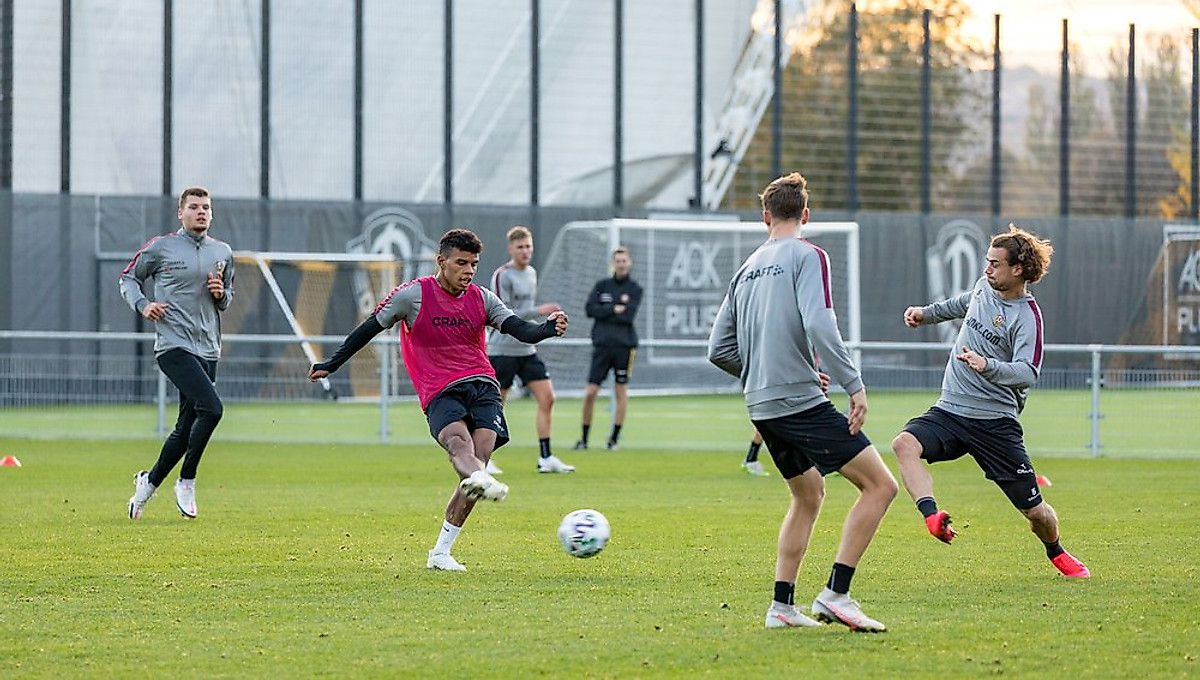 Die umliegenden Bäume an der AOK PLUS Walter-Fritzsch-Akademie haben Mitte November zu einem großen Teil ihr Laub verloren. Dynamos Cheftrainer Markus Kauczinski holte am Mittwoch bei sieben Grad Celsius und leichtem Wind unterdessen die dicken Winterklamotten raus, um sich mit seiner Mannschaft auf das nächste Geister-Heimspiel in der 3. Liga vorzubereiten.Zu Beginn des Trainingstages wurde sich bei einem gemeinsamen Ständchen diesmal warmgesungen: Fitnesstrainer Matthias Grahé (52) und Linksverteidiger Jonathan Meier (21) feierten am 11. November, dem „Martinstag“, Geburtstag.