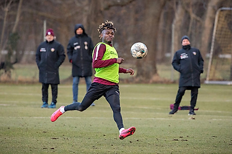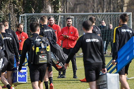 Alle Spieler, die am Montag beim 4:1-Testspielerfolg gegen Jena zum Einsatz gekommen waren, absolvierten zur Belastungssteuerung ein reduziertes Trainingsprogramm und holten sich die nötige Frische beim Fußballtennis.