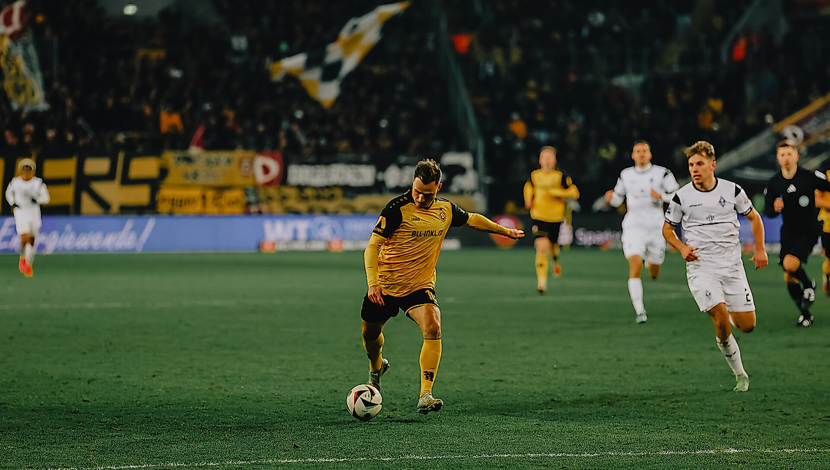 Dynamo war in den Anfangsminuten komplett am Drücker. Drei Minuten später hatten die Dynamo-Fans den Torschrei erneut auf den Lippen. Jonas Oehmichens Kopfball ging allerdings nur ans Außennetz.