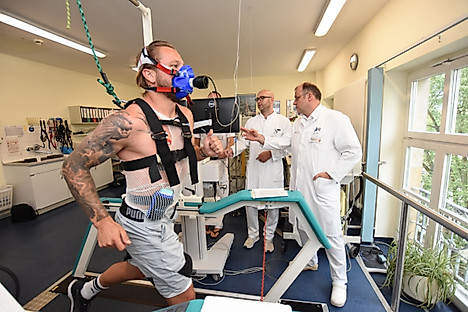 Ein mehr als zehnköpfiges Team, zu dem neben den Sportmedizinern der Uniklinik auch Mitarbeiter von Herzzentrum und Augenklinik gehörten, checkte die Profis im besten Wortsinn auf Herz und Nieren.