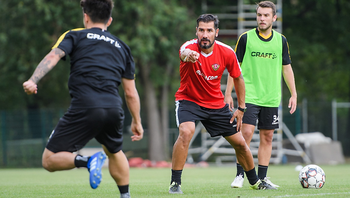Dynamos Interimstrainer Cristian Fiel arbeitet während der Länderspielpause entschlossen und fokussiert mit seinen Schützlingen auf dem Trainingsplatz.Die Trainingskiebitze rund um das Übungsgelände im Großen Garten sahen am Mittwoch zwei intensive Einheiten. Cristian Fiel trieb seine Schützlinge immer wieder lautstark an und griff regelmäßig korrigierend in die Trainingsarbeit ein.
