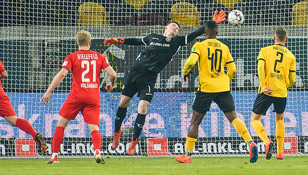 Dynamo blieb jedoch am Drücker. Gegen Konés Kopfball klärte Ortega noch (39.). In der folgenden Szene parierte Arminias Keeper gegen Nikolaous Kopfball, doch im Nachsetzen war Koné zur Stelle und drückte den Ball aus drei Metern mit hohem Bein zum 3:1 ins Netz (40.).