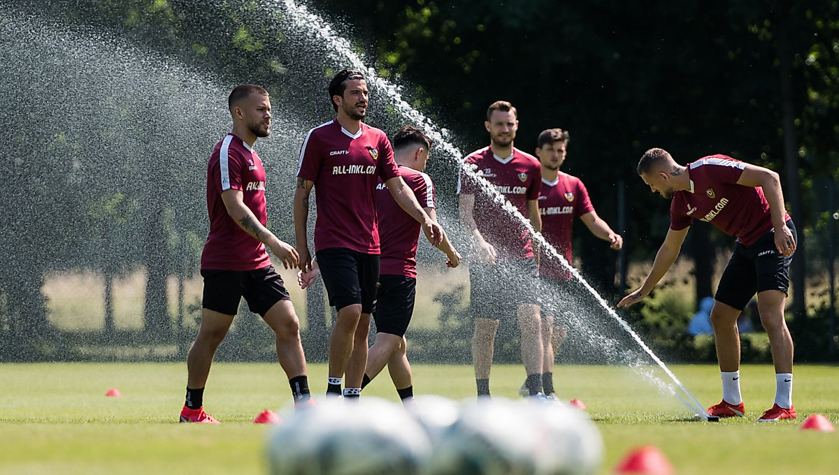 Das Trainerteam um Chefcoach Markus Kauczinski begrüßte am Samstag um kurz nach 11 Uhr zur letzten Einheit im Großen Garten insgesamt 20 Feldspieler und vier Torhüter. Am Sonntag trifft die SGD dann ab 15.30 Uhr im letzten Pflichtspiel der laufenden Saison auf den VfL Osnabrück.Bei hochsommerlichen Temperaturen von über 30 Grad Celcius stand lockere Ballarbeit im Mittelpunkt des Abschlusstrainings von Dynamos Zweitliga-Team, welches vor dem 34. Spieltag praktisch bereits als erster Absteiger aus dem deutschen Fußball-Unterhaus feststeht.