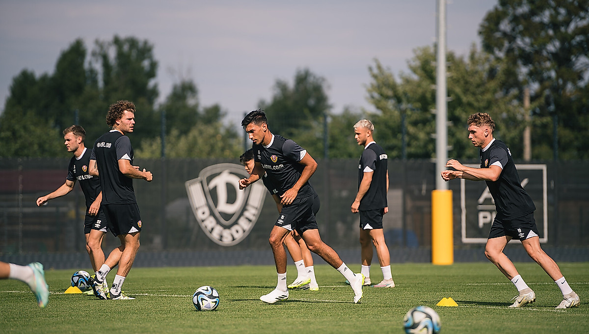 Die Drittligaprofis der SG Dynamo Dresden stecken mitten in der Vorbereitung auf das erste Auswärtsspiel der Saison. Am Freitag, dem 18. August, trifft die Mannschaft von Cheftrainer Markus Anfang um 19 Uhr auf den SV Sandhausen am Hardtwald. In der AOK PLUS Walter-Fritzsch-Akademie standen deswegen am Dienstag zwei Einheiten auf dem Programm.